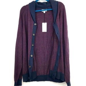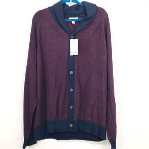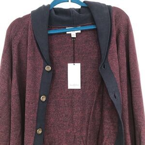 Goodfellow Burgundy Navy Blue Button Front Collared Cozy Knit Cardigan Sweater