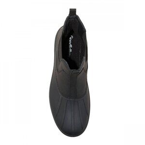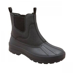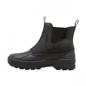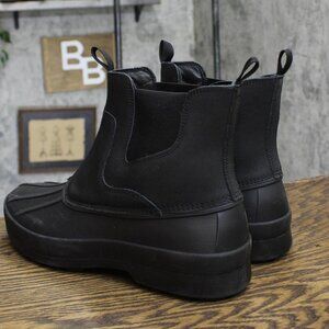 Sleek black boots for wet weather. Durable and stylish. Ideal for rain and snow.