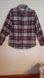 Red, Gray and Black plaid long-sleeve button down flannel shirt.