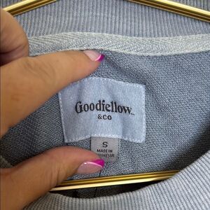 Experience the perfect blend of style and comfort with the Goodfellow & Co crewneck sweater in a versatile gray hue. This sweater features ribbed cuffs and hem, offering a classic look ideal for casual outings. Crafted from a soft cotton blend, it ensures a cozy fit for everyday wear.