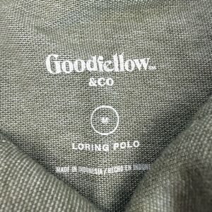 This Goodfellow & Co polo shirt in size M features a green loring fit with a spread collar and short sleeves. The pullover closure and machine washable fabric make it a convenient option for any occasion, whether it be travel, party, casual, workwear, or business. The shirt is made of cotton and has a knit fabric type, with a season range of winter, summer, fall, and spring. The shirt is part of the Goodfellow & Co product line and has a model name of Goodfellow & Co Loring Polo.