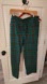 Comfortable plaid pajama pants. Features a green and red pattern. Perfect for lounging.