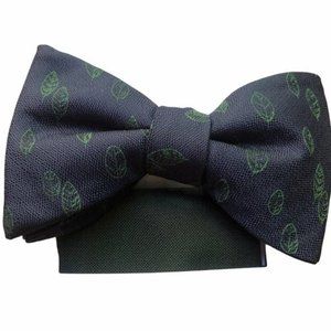 •1 navy blue adjustable bow tie with green leaf pattern