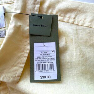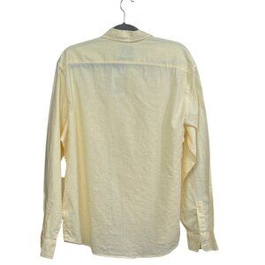Goodfellow & Co Mens Button-Up Linen Blend Shirt Yellow L Standard Fit Casual
