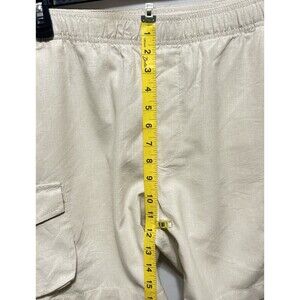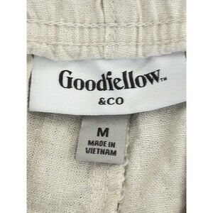 The Goodfellow & Co Men's Medium Linen Cotton Shorts in Beige are a stylish and comfortable option for outdoor activities. These cargo-style shorts feature a drawstring closure, elastic waist, and a 6-pocket design for added convenience. Made from a blend of linen and cotton, they offer a lightweight and easy-care fabric that is perfect for a beach or vacation look. Perfect for casual outings, these shorts from Goodfellow are a versatile addition to any man's wardrobe.