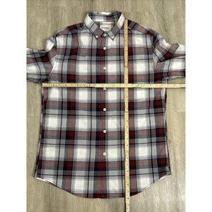 Crafted from 100% cotton, this Goodfellow & Co shirt offers a stylish and preppy look with its red and black plaid design. The button-up style is versatile for casual or semi-formal settings, providing comfort and a classic fit.