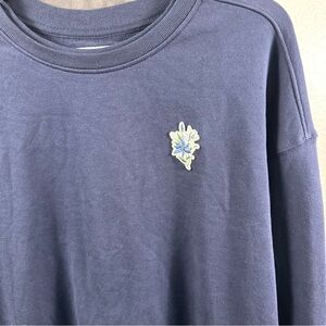 Navy crewneck sweater with unique chest emblem. Perfect for everyday style.✨