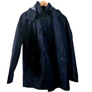 Goodfellow raincoat, men's water-resistant jacket, navy blue trench coat, Goodfellow large jacket, polyester rain jacket, commuter coat, Target men's jacket, lightweight rainwear, Goodfellow navy coat NWT