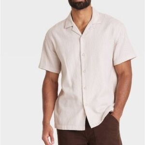 Goodfellow & Co- Men's Short Sleeve Slub Camp Button-Down Shirt Medium Pink Rose