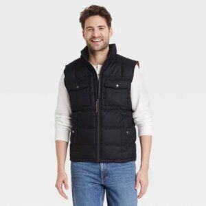 Goodfellow & Co Mens Zip & Snap Front Puffer Vest with Multiple Pockets