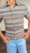 Stylish striped shirt with a blend of blue, brown, and gray. Ideal for casual wear. Casual Goodfellow & Co Northrop short sleeve button down shirt for men. Features a multicolor striped pattern in earthy tones, standard fit, and lightweight breathable fabric. Perfect for summer, casual outings, or layering.