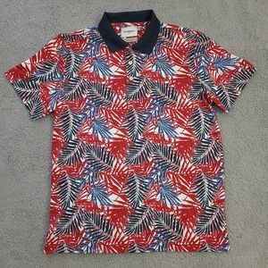 Goodfellow & Co Polo Shirt Mens Large Hawaiian Aloha Palm Floral Knit Collar