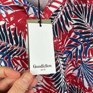 Goodfellow & Co Polo Shirt Mens Large Hawaiian Aloha Palm Floral Knit Collar Large