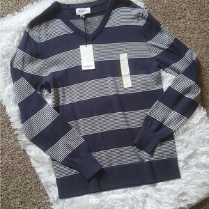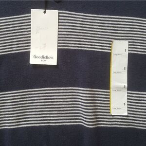 Goodfellow & Co Sweater Dark Blue & White Striped V-neck Sz Small New with tags
