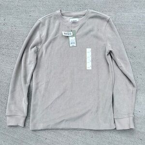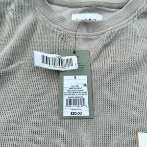 This tan long sleeve tee from Goodfellow & Co is a versatile addition to your wardrobe. Crafted with comfort in mind, it features a classic design that pairs well with any casual outfit. The ribbed cuffs add a touch of style to this essential piece.