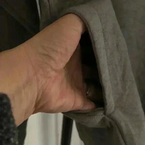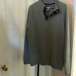 NWT men’s sweater 1/4 bottoms in front pockets, gray size medium.