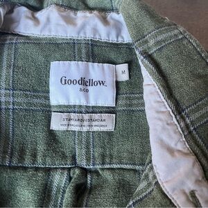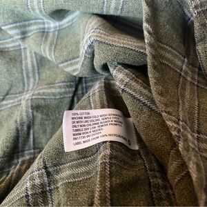 Green 100% cotton flannel from Goodfellow target brand. Good condition worn with some minor pilling. Marked as size medium but fits more like a men’s size small.