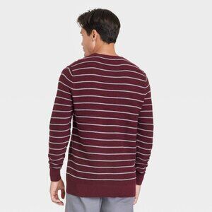 Goodfellow Men’s Striped Crewneck Pullover Sweater | Size L | NWT | 100% Cotton | Burgundy Gray Stripe