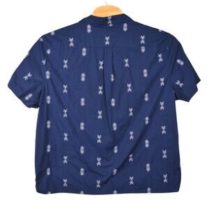Goodfellow button-up shirt XXL, navy short sleeve shirt, printed casual shirt men, tribal pattern shirt, men’s summer shirt, Goodfellow & Co top, breathable cotton shirt, men’s navy shirt short sleeve