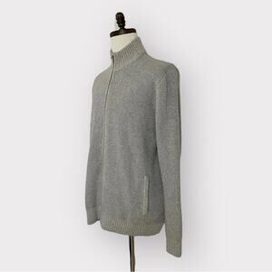 Great zip up cardigan sweater in light gray. Crewneck design and warm enough for the cooler months. Perfect pre-loved condition. Size XL
