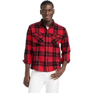 Goodfellow Red Plaid Heavyweight Flannel Button Front LS Shirt -- Medium 38/40