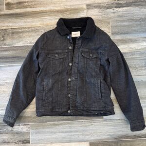 Goodfellow and Co Mens Black Denim Trucker Jacket Sherpa Lined Casual Outdoor M