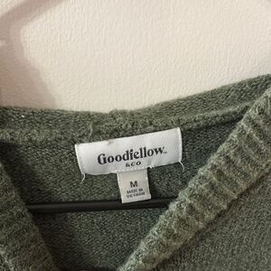 Embrace comfort and style with this green knit sweater from Goodfellow & Co. Featuring a cozy hood and long sleeves, this medium-weight sweater is perfect for casual outings. Its simple and classic design ensures versatility in your wardrobe.