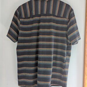 Goodfellows Short Sleeve Button Down Navy Blue Striped Size L.
