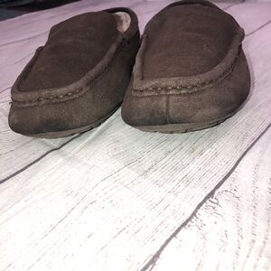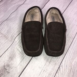 Goodfellow suede slippers men’s size 7, easy on and off. Rubber sole that can be worn indoors or outdoors