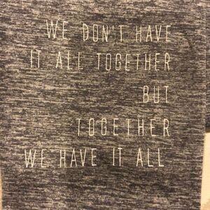 Good hYOUman Heather Gray Inspirational Leggings. Leggings in heather gray. Writing on back bottom of right leg. Made of polyester and spandex. Inseam approx 26”.
