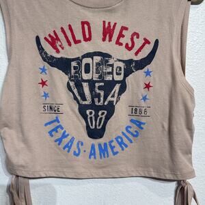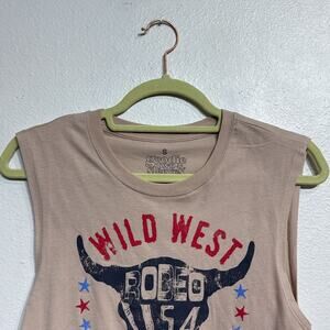 Goodie Two Sleeves Tan Wild West Muscle Tank Sz S