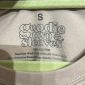 Small tan, black, red and blue muscle tee by Goodie Two Sleeves in excellent preowned condition.