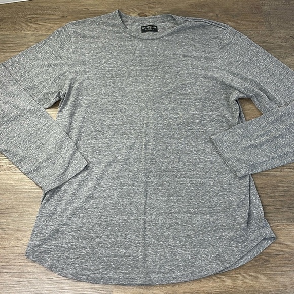 Goodlife Men’s Long Sleeve Grey Crewneck Tee Shirt, size XXL. In excellent used condition. See pictures for measurements and fabric content.