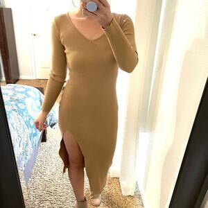 Goodnight Macaroon Camel 3/4 Sleeve Sweater Dress Women’s size Small