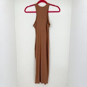 Goodnight Macaroon Dress Womens Small Brown Fitted Ribbed Slit Solid Sleeveless