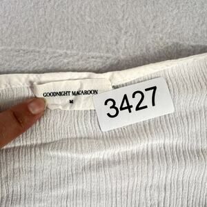 Womens Goodnight Macaroon Medium Embroidered Colorful White Pom-Poms Top