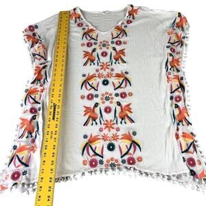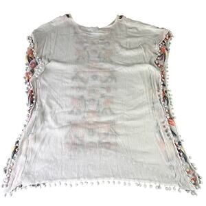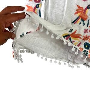 Goodnight Macaroon Tunic Top Womens Medium Embroidered Colorful White Pom-Poms
