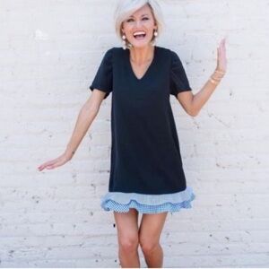 Goodnight Macaroon black sleeveless dress with plaid hem size M