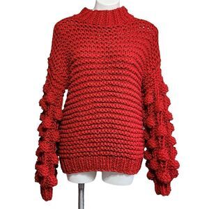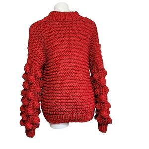 Goodnight Macaroon red chunky knit pull over sweater with bubble sleeves