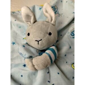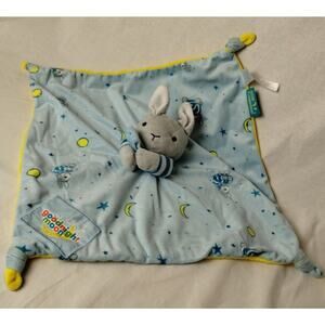 Goodnight Moon Bunny Rabbit Plush Lovey Security Blanket Blue Yellow - Knotted
