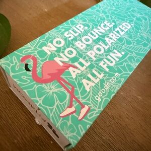 Stylish and durable, these Goodr sunglasses feature a classic tortoise shell design. Perfect for any occasion, they offer both fashion and function. Sold with flamingo cinch bag and box.