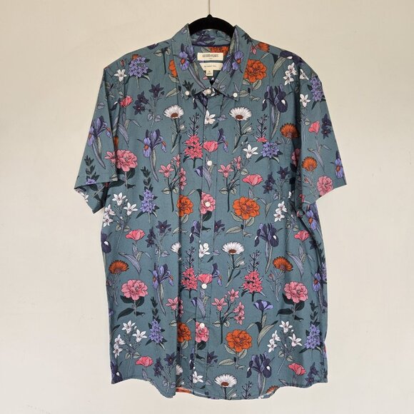 Goodthreads Floral Button Down Shirt Men's XL Poplin Slim Fit Pocket Vacation