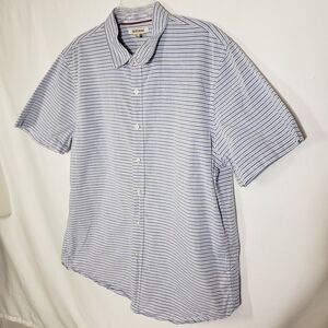 Goodthreads Men's Shirt Size XL Short-Sleeve Horizontal Stripe Blue White Button