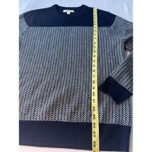 Goodthreads Men's Size L Wool Blend Striped Sweater Navy Blue Pullover Winter