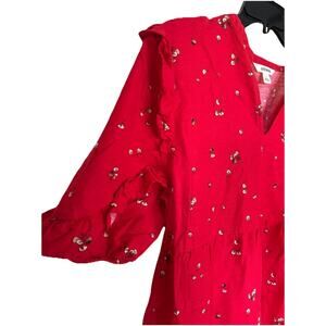 Goodthreads Red Ginkgo Print Linen Blend Peasant Prairie Dress Womens Large