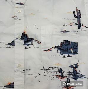Features: Button up, collar, front chest pocket and a cactus/desert theme.