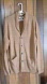 Stylish tan cardigan with shawl collar. Button closure and front pockets. Perfect for layering.