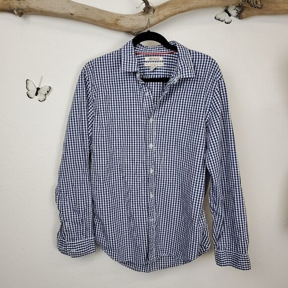 Casual micro checked blue and white button down shirt. Great to dress up or down. Standard fit