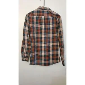 Features: plaid, stripe, orange, green, Long Sleeve, button-down,shamrock, leprechaun, green, Ireland, Irish, clover, parade, stpattys,