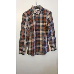 Features: plaid, stripe, orange, green, Long Sleeve, button-down,shamrock, leprechaun, green, Ireland, Irish, clover, parade, stpattys,